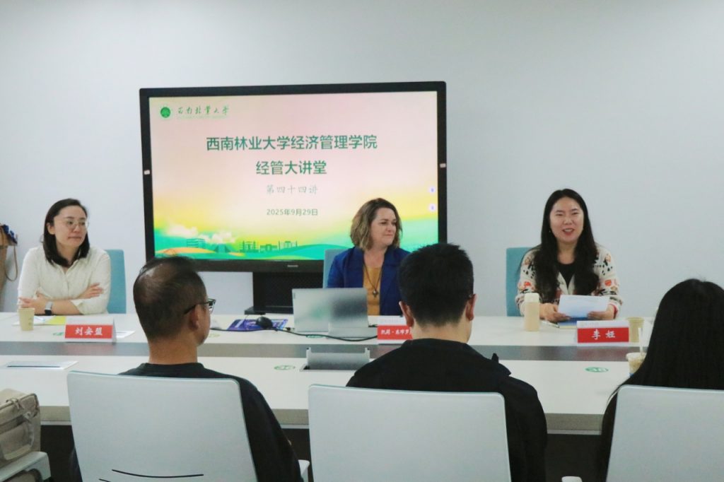 2025年9月29日,新西兰梅西大学国际人文地理学领域的权威学者,新西兰地理学会主席Kelly Dombroski教授做客 “经管大讲堂”,为公司师生作题为“Researching Diverse Caring Economies”的学术报告。报告由bevictor伟德官网副经理李娅主持,刘安盟博士协助翻译,30余名研究生代表参加。