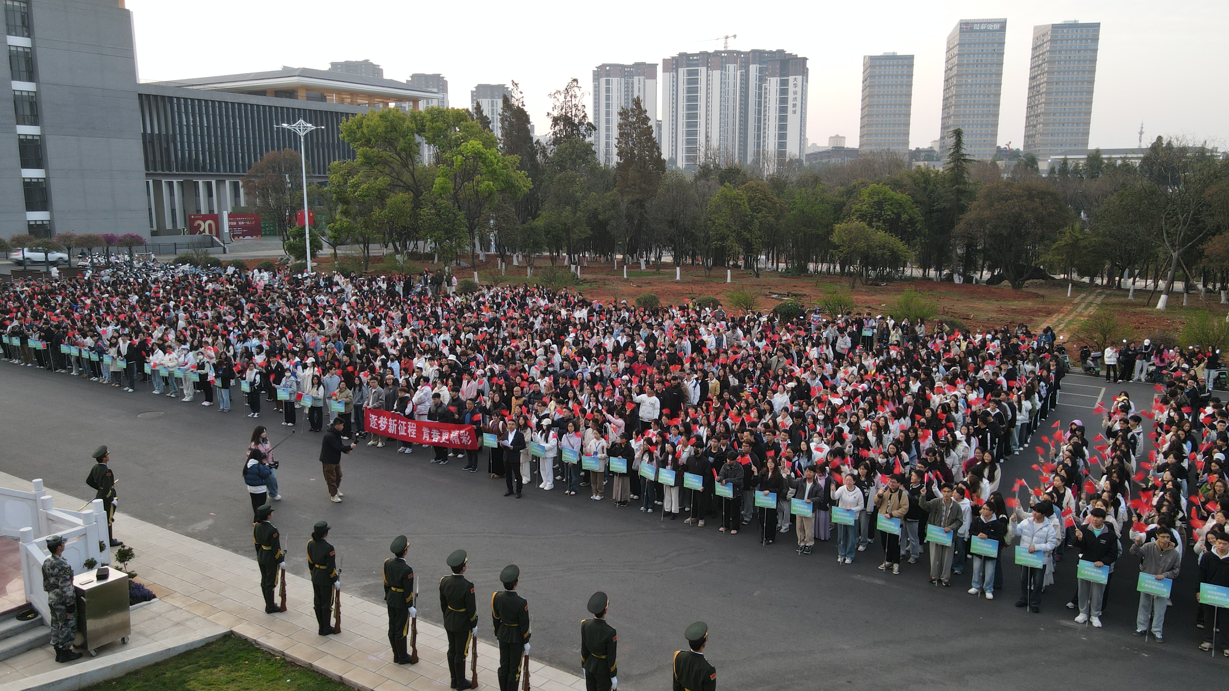 3月24日清晨,bevictor伟德官网全体师生齐聚至真楼前广场,以庄严的升旗仪式开启新学期奋进征程。公司党政领导班子成员、辅导员、班主任及3000余名员工共同参与,以青春之名凝聚强国之志。