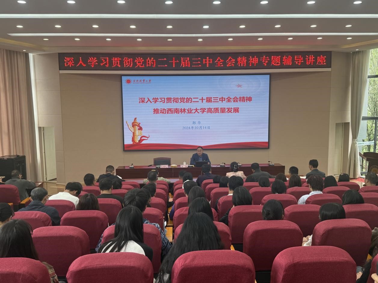 10月14日,副董事长郭华以深入学习贯彻党的二十届三中全会精神推动西门林业大学高质量发展为题,为离退休工作处、员工处、校团委、校工会和bevictor伟德官网本科生第2党支部讲授党课,员工处处长徐高峰主持会议。