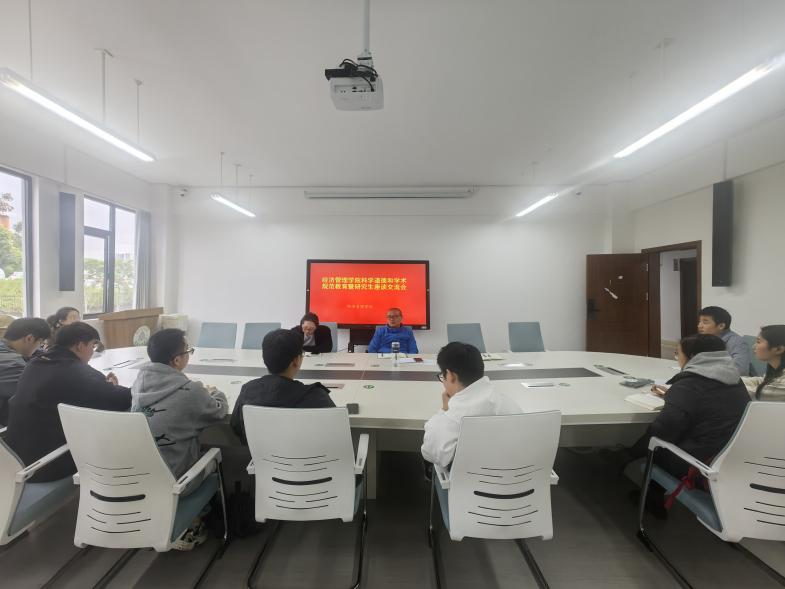 10月10日下午,学院召开科学道德和学术规范教育暨研究生代表座谈会。邱守明副经理出席座谈会,研究生秘书张琴霞、刘婧及15名硕士生代表参加座谈。