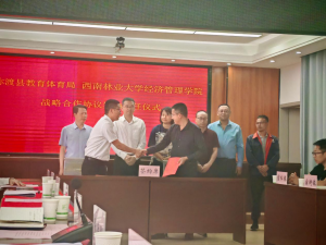张连刚代表学院与弥渡县教育体育局签订战略合作协议。张连刚、刘俊伟、邹再进为李聪、单文武、邹平颁发公共管理硕士(MPA)教育中心行业导师聘书。