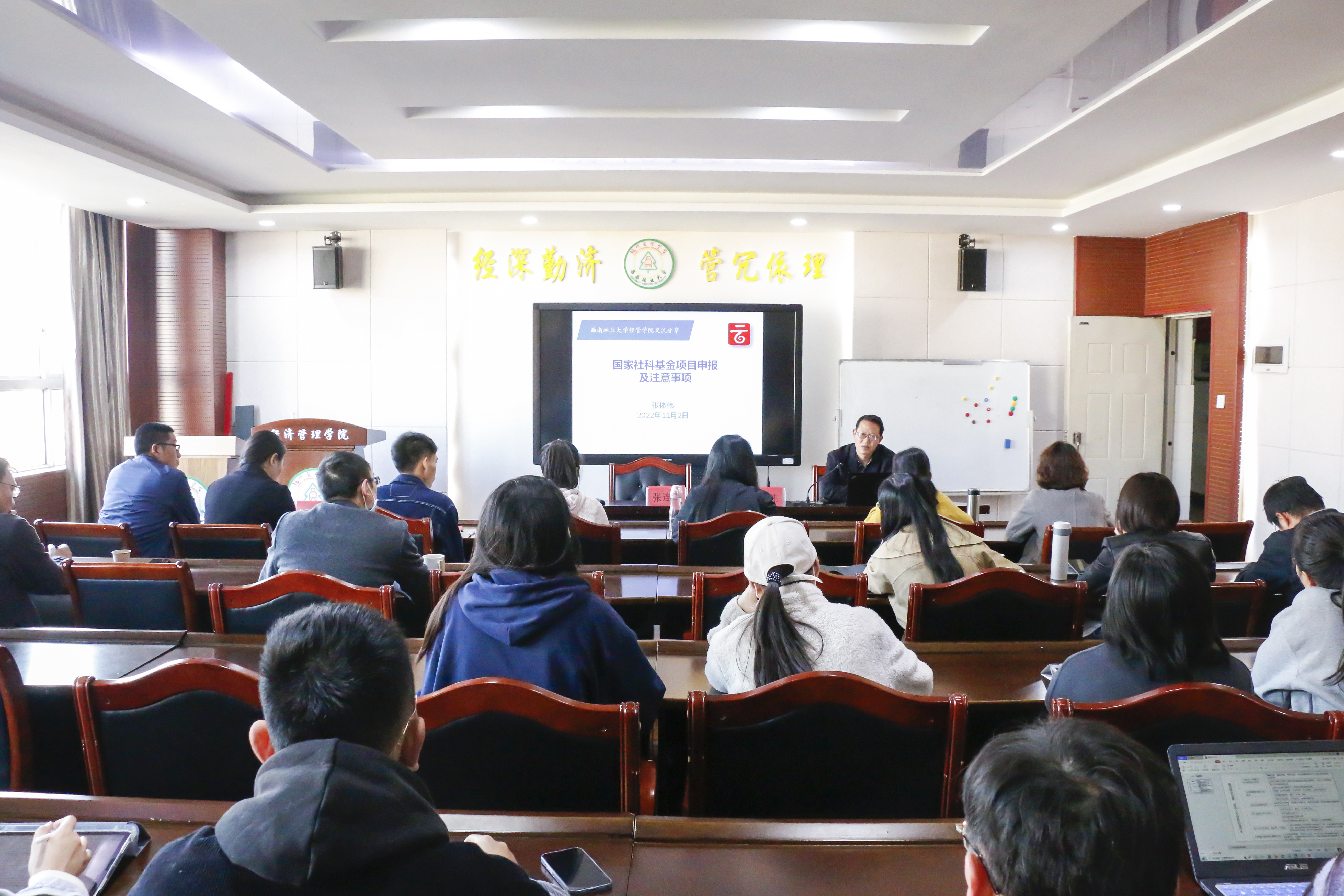 为进一步推动bevictor伟德官网国家社科基金申报工作,提升学院教师的科研和学院学科发展水平,11月2日上午,云南省社会科学院农村发展研究所二级研究员、省中青年学术技术带头人、“省突”“省贴”专家张体伟,应bevictor伟德官网邀请就国家社科基金申报工作开展申报辅导和交流。bevictor伟德官网副经理(主持工作)张连刚教授主持会议,bevictor伟德官网和其他学院及部门的近60名师生参加。