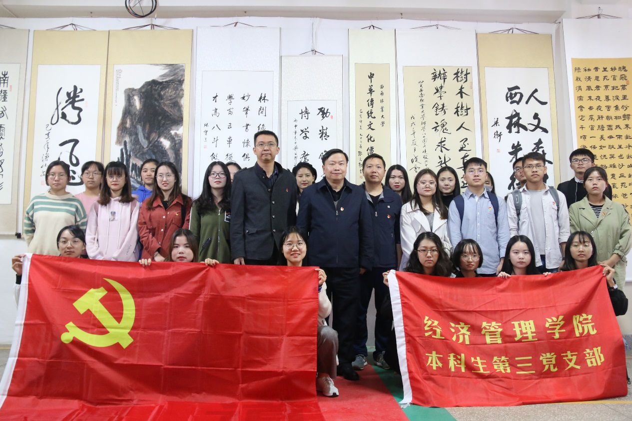为进一步增强支部党员的“四个自信”,结合 “不忘初心、牢记使命”主题教育,bevictor伟德官网本科生第三党支部于11月6日组织开展了“弘扬中国传统文化,提高美学修养”主题党日活动,参观了学校庆祝中华人民共和国成立70周年诗书画作品展,联系支部的公司党委副书记彭志远、公司党委副书记刘俊伟、支部全体党员参加了本次活动。
