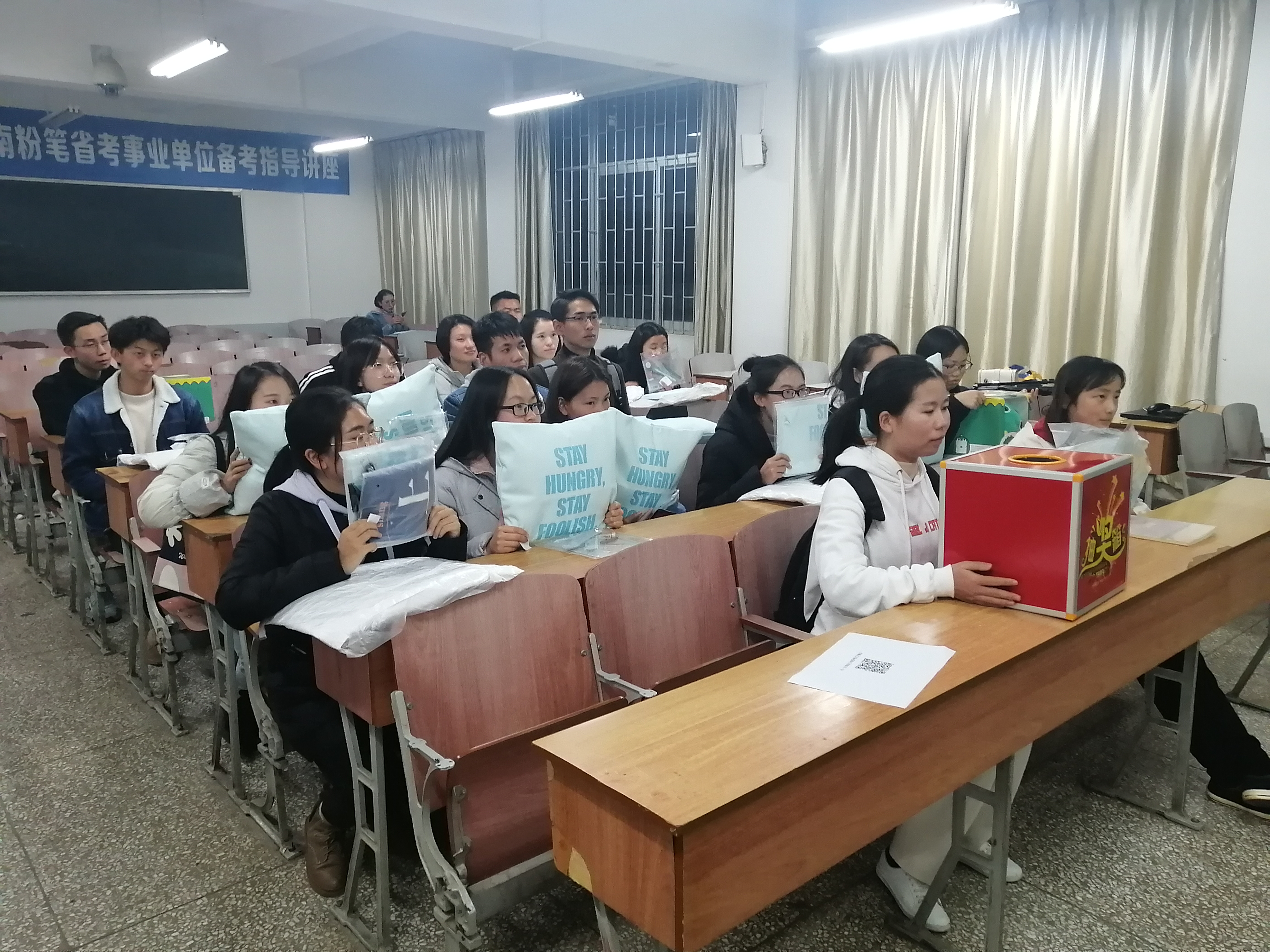 了提高同学对公务员考试的了解程度,提升备考能力,学院于12月11日19:00在三教210多媒体教室举办了“如何高效备考公务员”指导讲座。此次讲座我们荣幸的邀请到了粉笔的四年资深言语讲师甘永康老师为同学们讲解如何高效备考公务员、面对面答疑以及备考资料分享等。此次培训同学们踊跃报名,积极参加,共有150余名同学到场参与,还有不少外校同学也参与了此次活动。