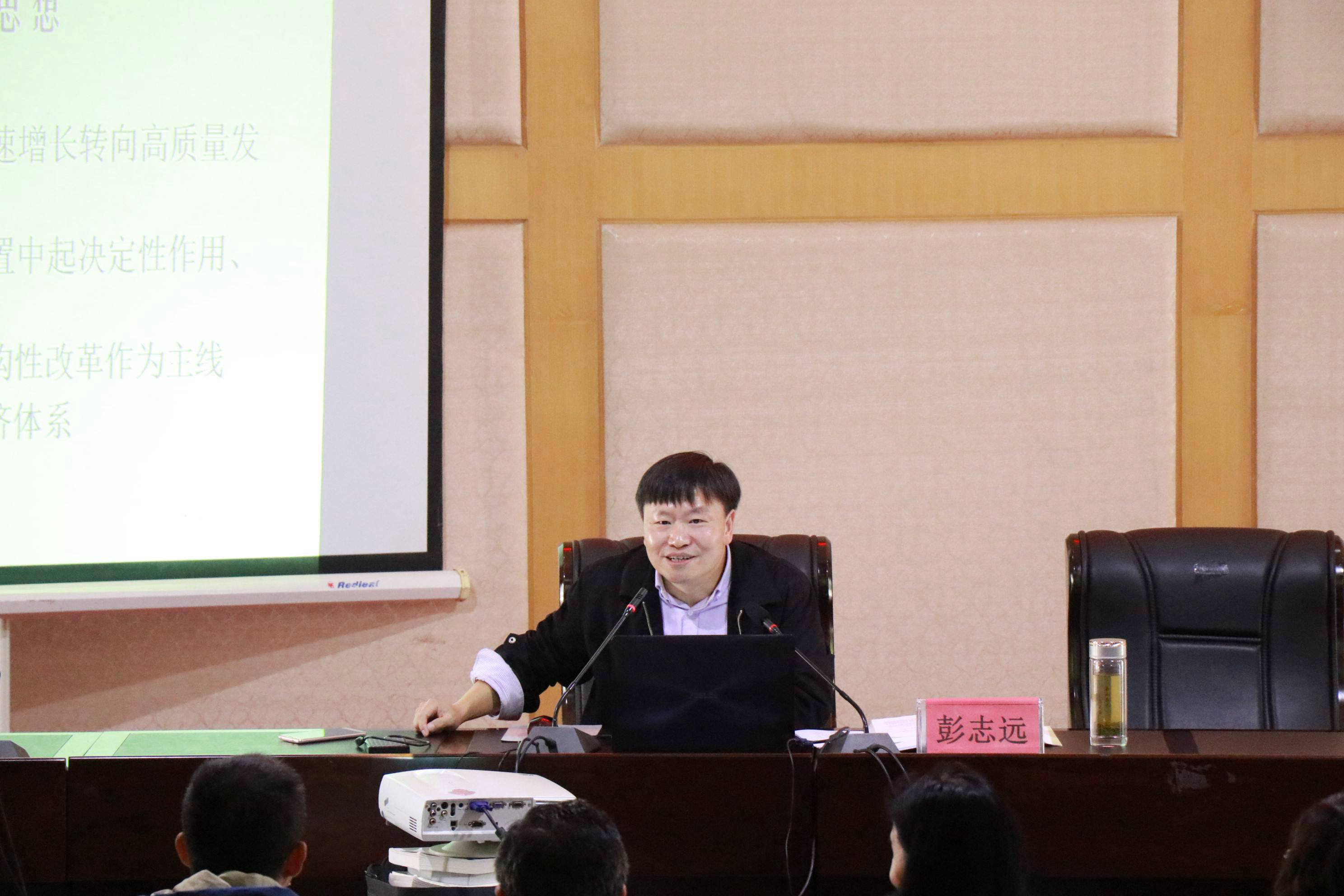 课上,彭副书记紧扣习近平新时代中国特色社会主义经济思想,结合bevictor伟德官网、会计学院、绿色发展研究院专业学科特点、研究领域,阐述了新发展理念的深刻内涵,讲解了经济转型、供给侧结构性改革、乡村振兴等方面的内容,课堂内容详实、案例生动,讲解结合实际、深入浅出,为大家上了一堂非常精彩、生动的党课。
