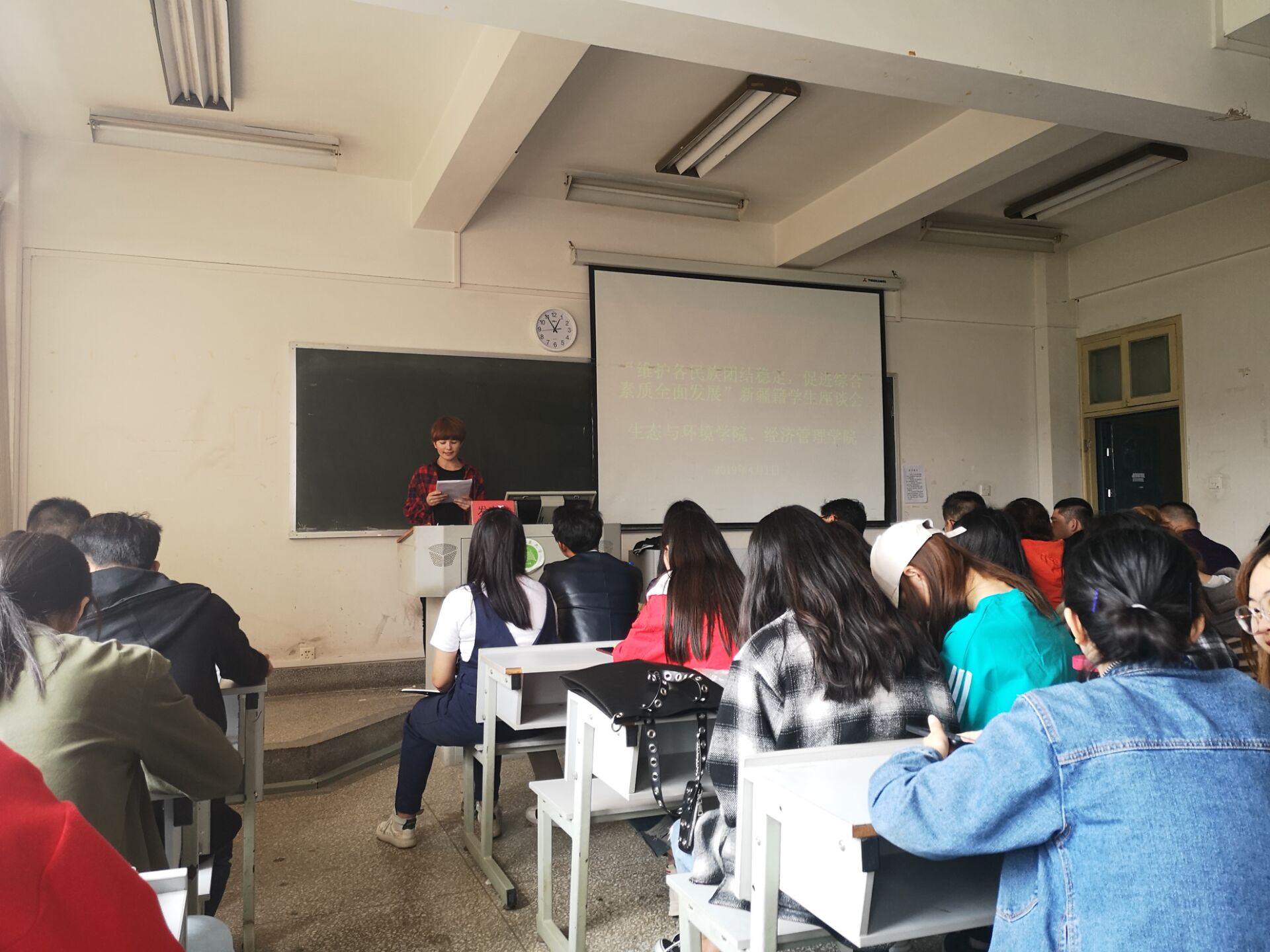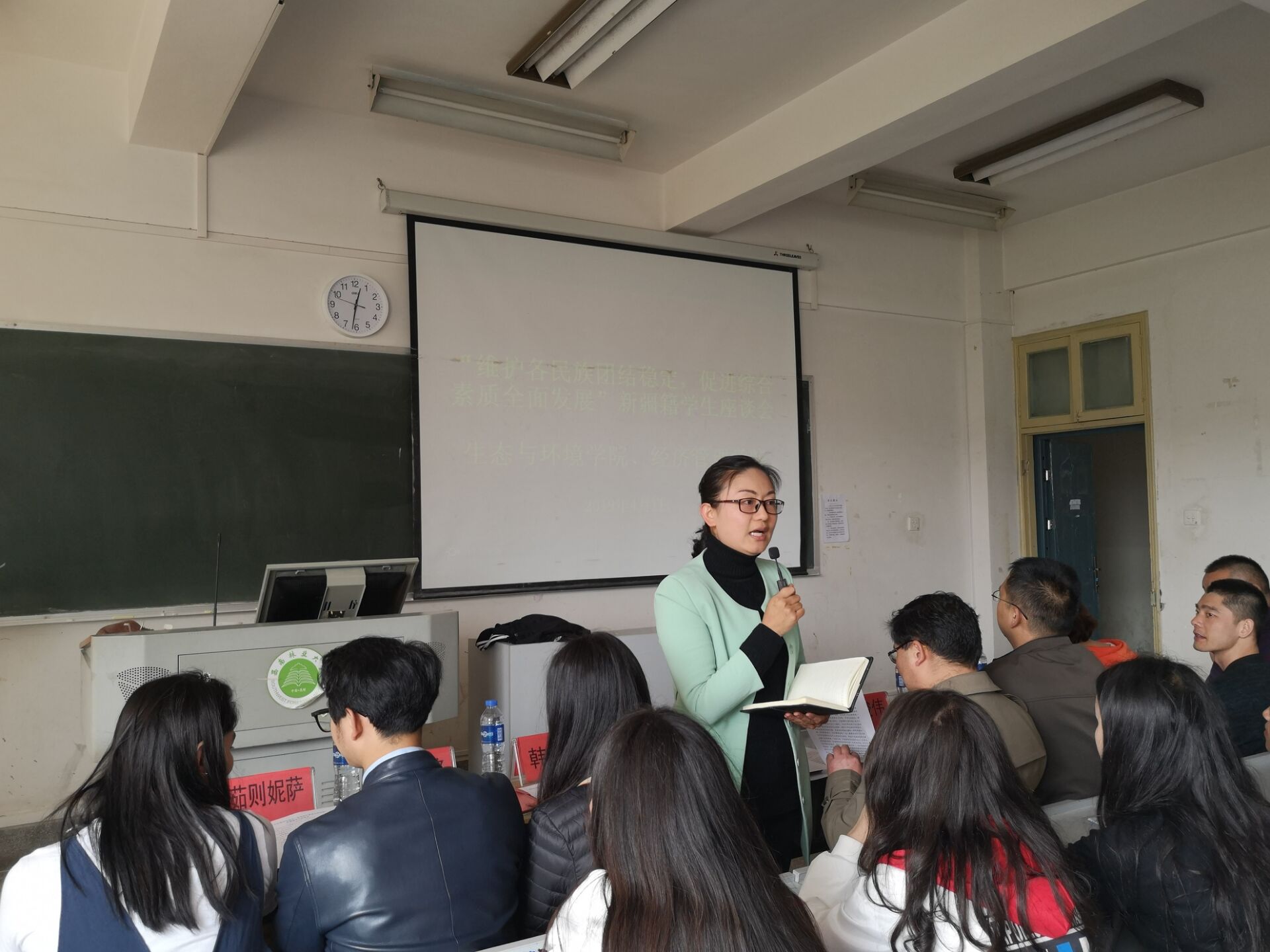 为了更好的关心新疆籍员工的学习生活,促进新疆籍员工综合素质全面发展,更好的响应十九大的号召,建设好和谐校园,生态与环境学院、bevictor伟德官网特于2019年4月1日12点30分在第三教学楼416召开新疆籍员工座谈会,员工处张德国副处长、生态与环境公司党委李贵兰副书记、公司党委刘俊伟副书记、员工处员工科韩媛媛老师、王光铭老师、茹则妮萨老师;新疆内派老师奥米尔赛力克、努尔古丽、王同年三位老师以及学院涉及新疆籍员工辅导员与80余名新疆籍同学参加此次座谈会。此次会议由bevictor伟德官网辅导员李政主持。