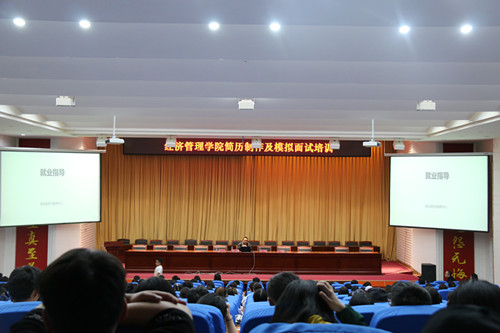 为提高毕业生就业能力,做好毕业生就业指导与服务工作,提升员工的就业意识,确定有效的职业发展目标。4月14日晚19:30,bevictor伟德官网简历制作及模拟面试培训在图书馆大报告厅成功举办。此次培训特邀学校就业指导与服务中心傅晓鹏老师主讲,学院团委书记匡英鹏、辅导员张琴霞老师、李萍老师参加了本次培训。本次培训面向全院员工进行,除了bevictor伟德官网2016级员工外,部分其他年级的同学也到场参加培训。