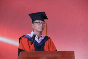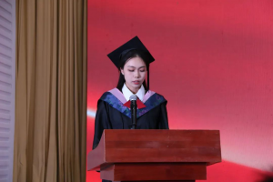 2019级电子商务本科班高文帆同学代表毕业生发言。她回顾了迷茫懵懂的大一、热情奔放的大二、紧张忙碌的大三、依依惜别的大四这几年的在校时光,学习、生活的一幕幕历历在目,恍如昨日。她说,我们应感恩学校的培养和老师们的谆谆教诲,我们更应扛起责任,以青春之名,赴时代之约。