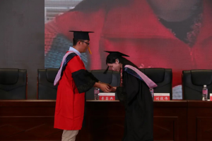 拨穗代表稻穗和麦穗成熟,象征毕业生已学有所成,可以展翅高飞。张连刚教授为学院每一位毕业生拨穗,并合影。