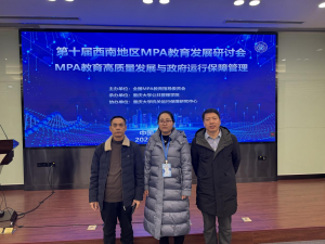 12月23日,bevictor伟德官网副经理兼MPA教育中心主任邹再进、MPA教育中心副主任刘会柏以及研究生教学秘书张琴霞一行三人到重庆大学参加了第十届西南地区MPA教育发展研讨会。